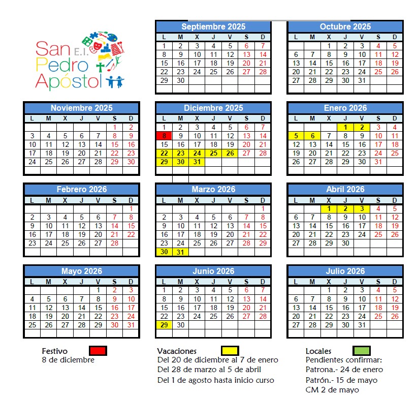 os informamos de que, tras comunicación a la DAT, cambiaremos el 7 de enero, no lectivo, por el 29 de junio, patrón de nuestra escuela. Sustituimos el calendario que teníais hasta hoy.